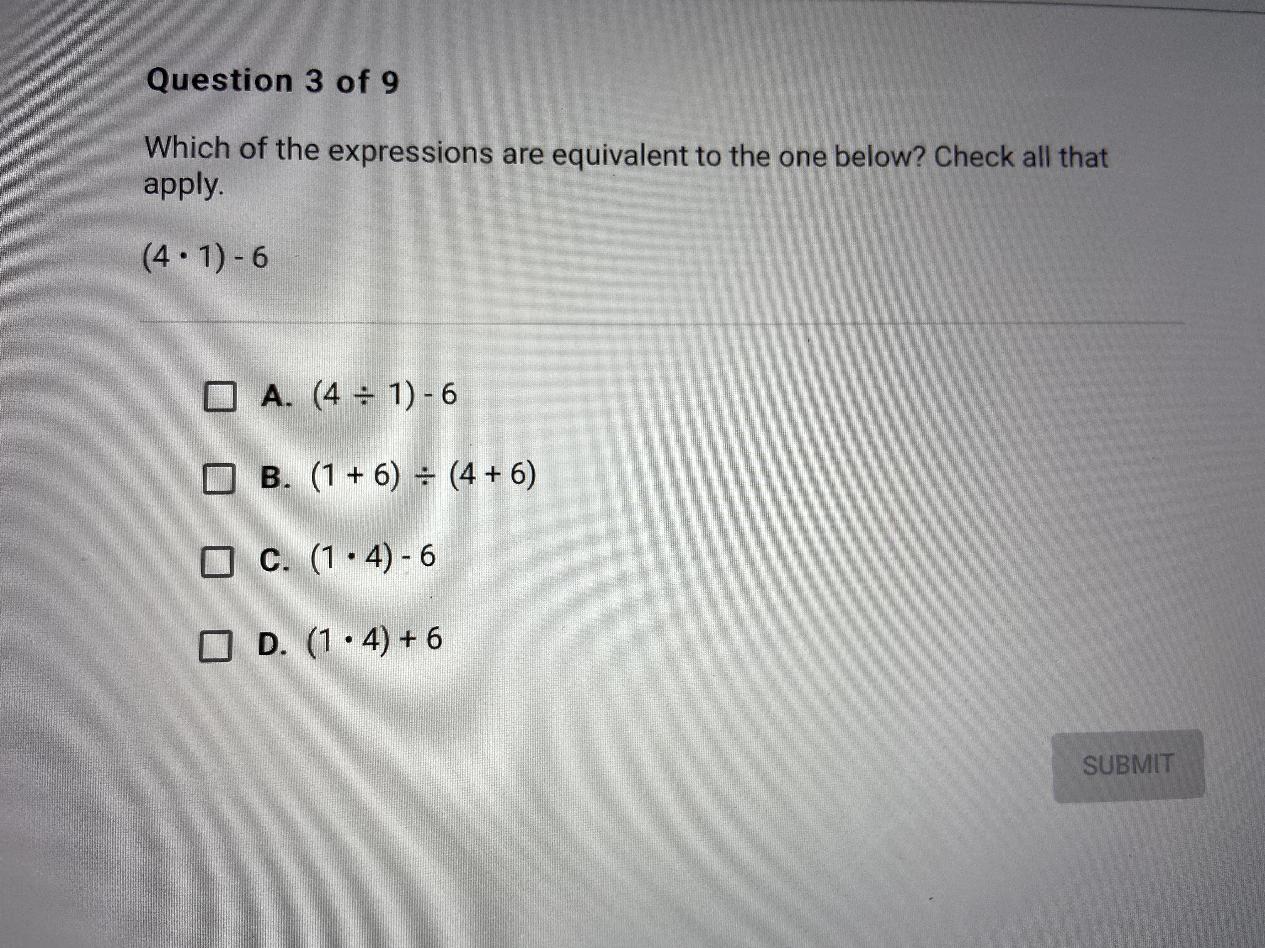 Which of the expressions are equivalent to the one below? (4x1)-6