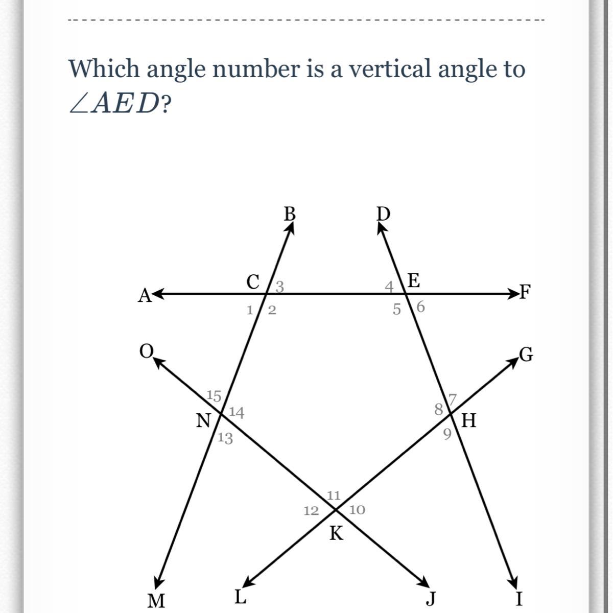 Which angle number is a vertical to