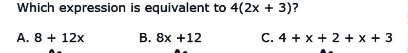 First you'd start with the parentheses because of PEDMAS. But because you can't do anything in there, you go to multiplying 4 by each item inside the parentheses. 4x2x gives 8x. 4x3 gives 12. Leaving you with 8x+12. Hope that helps! :)