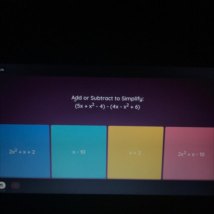 (x² + x²) + (5x - 4x) + (-4 - 6)