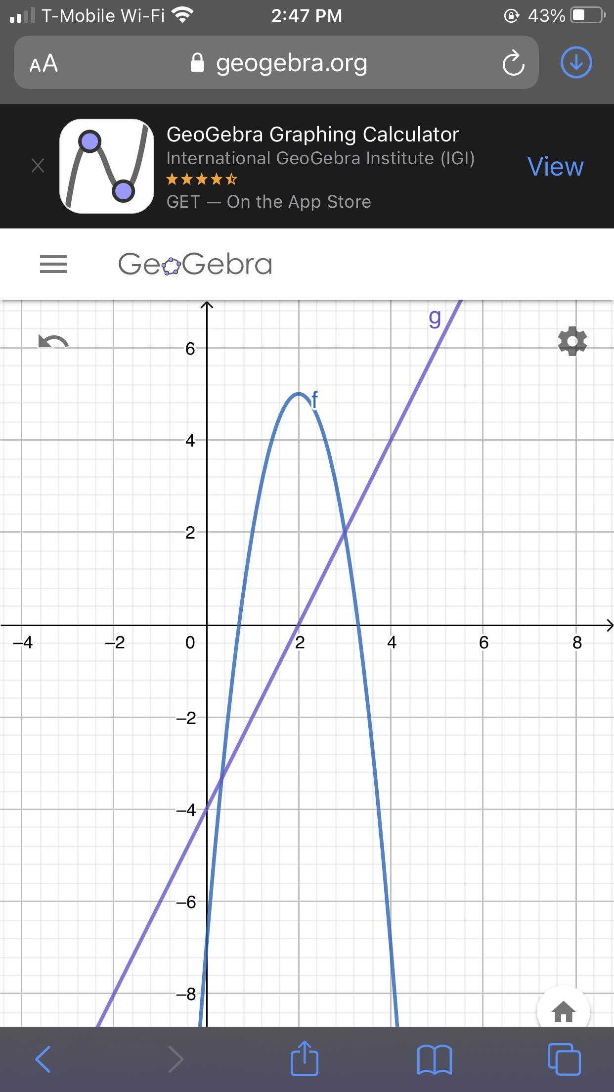 7. Use GeoGebra to find the solutions to the following system of equations.