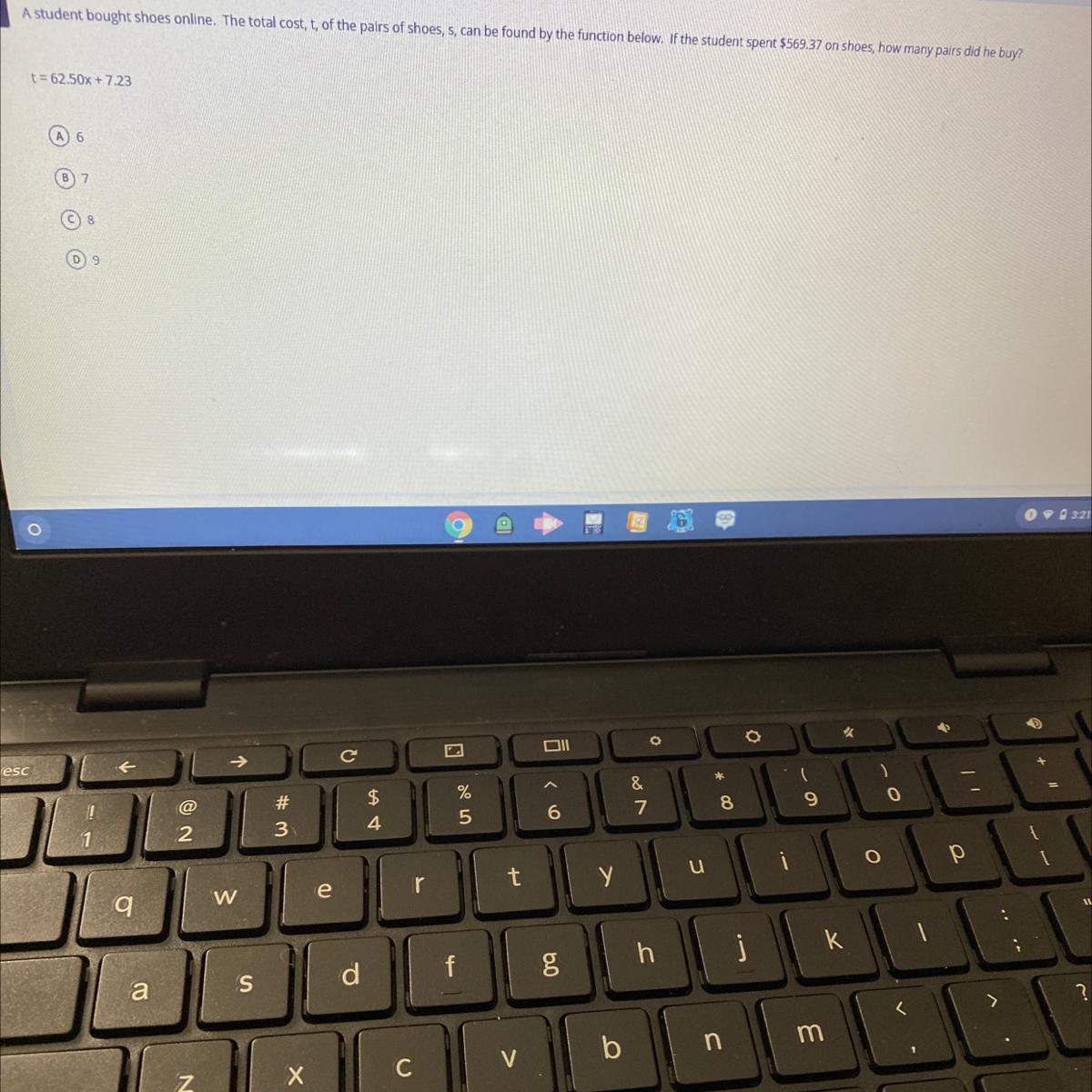 A student bought shoes online. The total cost, t, of the pairs of shoes, s, can be found by the function below. If the student s
