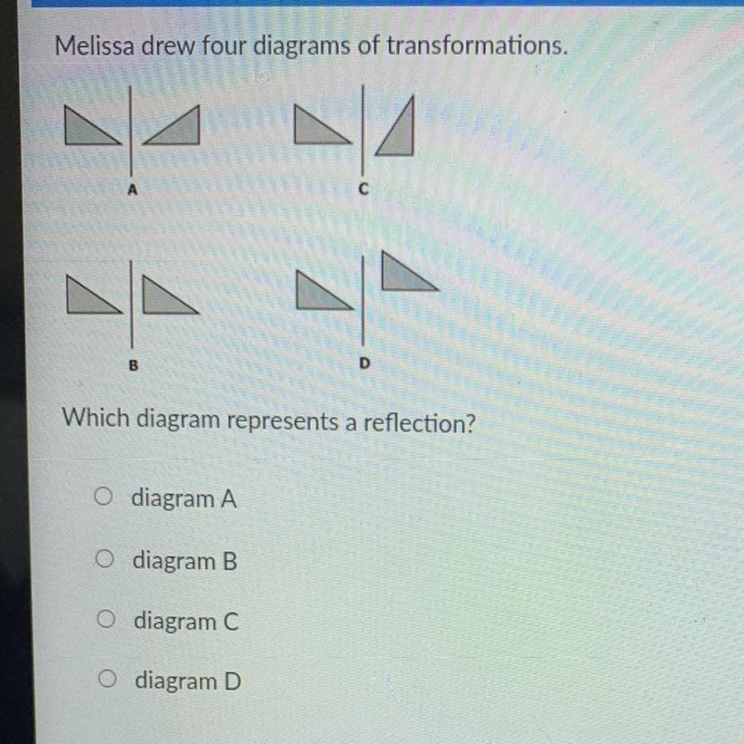 The answer is A. Remember reflections by thinking of them as mirrors, you are looking into the mirror and your reflection looks back at you.