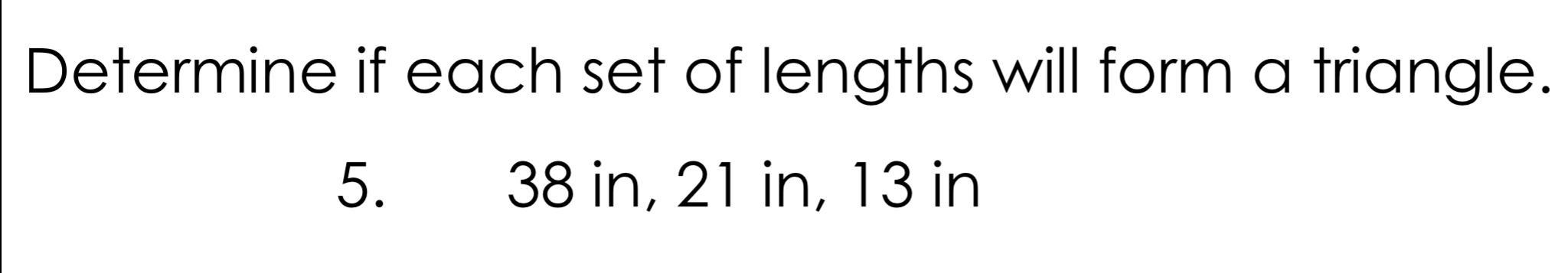 No, The sum of the lengths of sides b, c must be greater than the length of the remaining side a.