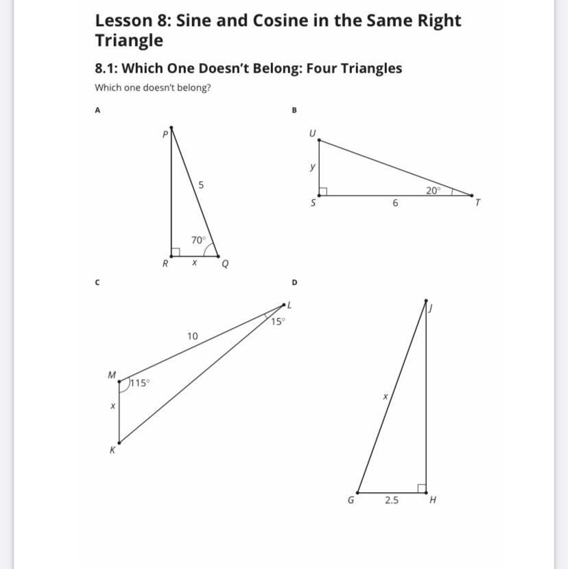 This is so because triangle C has one of its angles to be greater than 90 (i.e. 115) and other triangles (A, B and D) have an angle equal to 90, each.