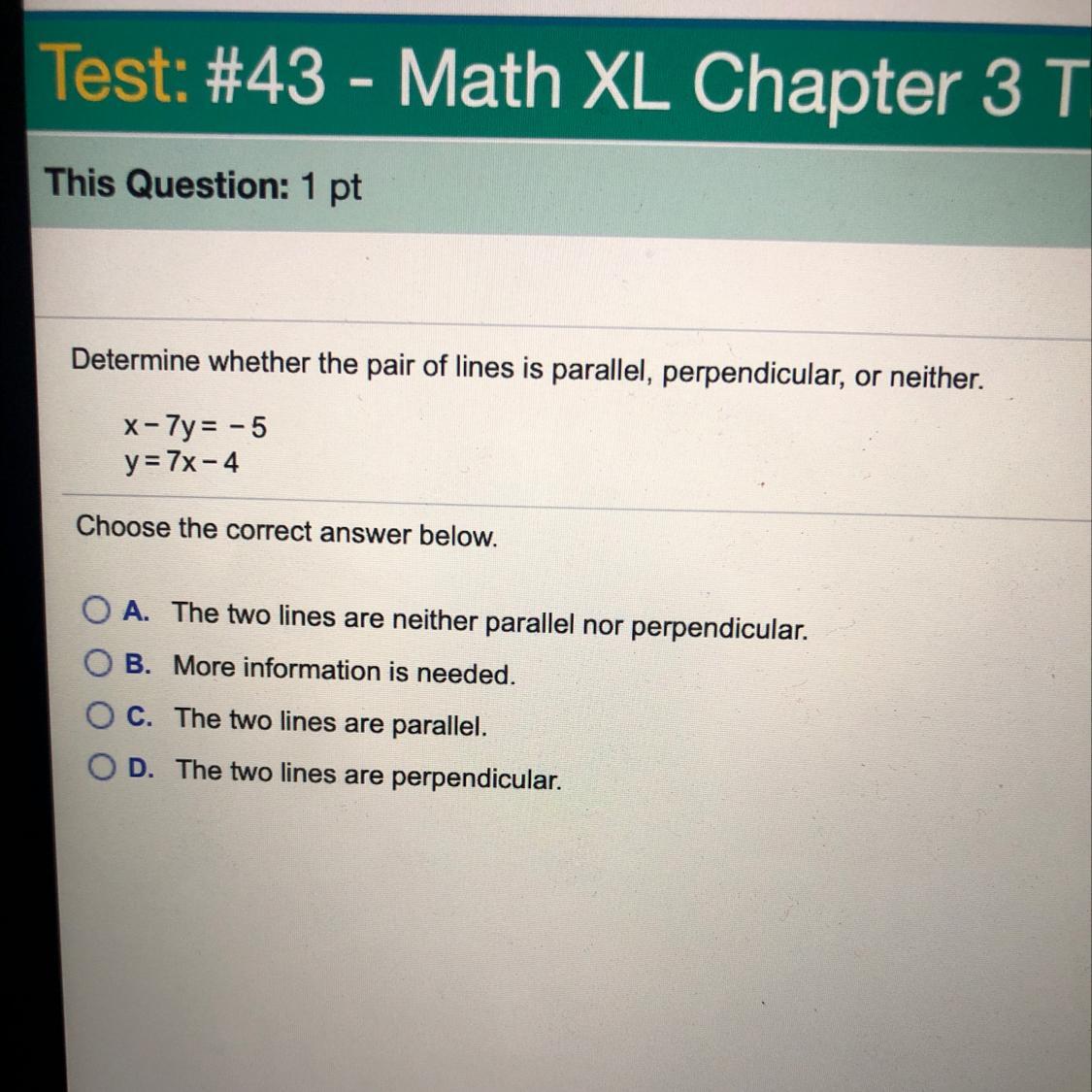 So, we can conclude that both lines are neither parallel nor perpendicular