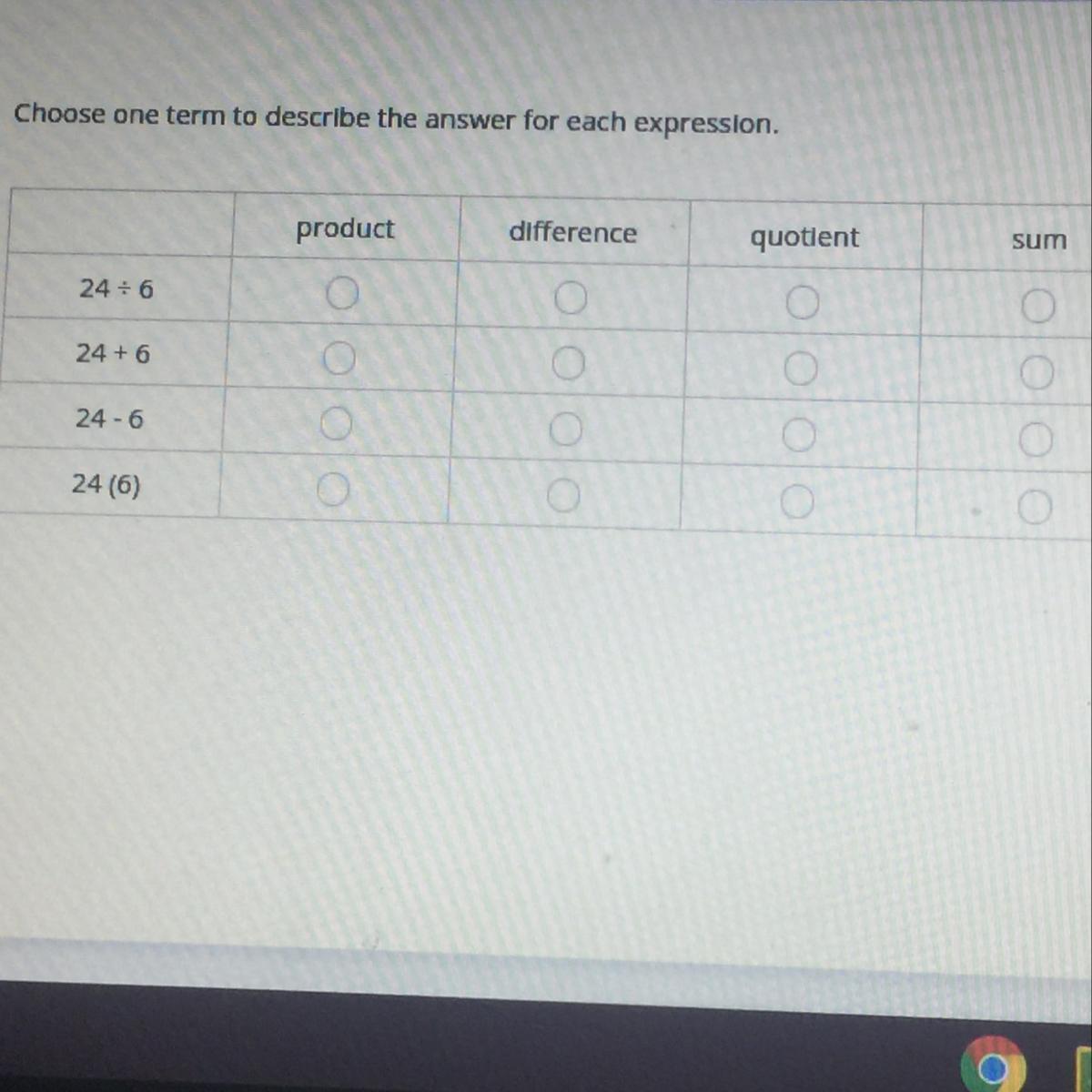 1)quotient, 2)sum, 3)difference, 4)product