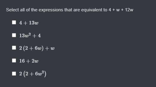 Select all of the expressions that are equivalent to 4 + w + 12w