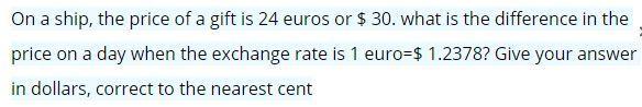 On a ship the price gift is 24 euros .What is the difference in the price on a day when the exchange rate is £1=2378