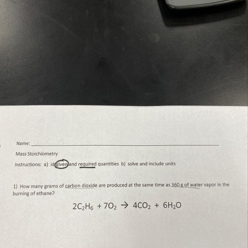 1) How many grams of carbon dioxide are produced at the same time as 360 g of water vapor in the