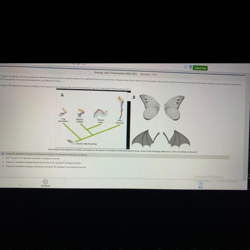 Diagram (B) depicts the wings of a butterfly and the wings of a bat. Although they have