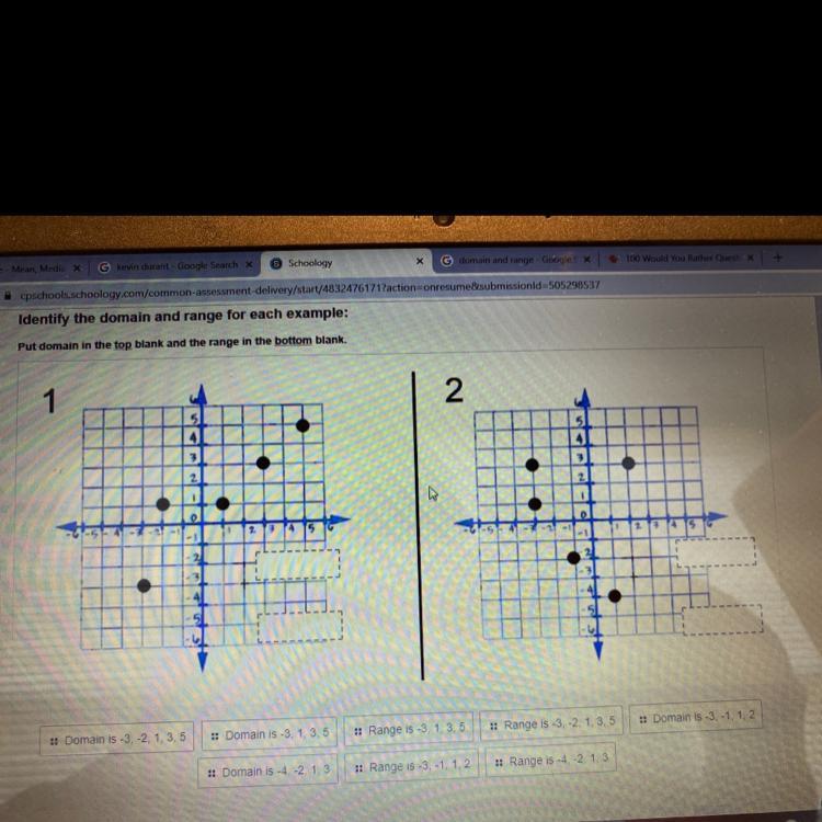 the domain is the x intercepts, so if the coord is (5, 7) the domain would be 5