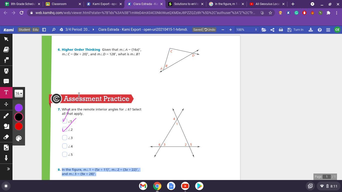 6x + 1 = 4x + 3 ( subtract 4x from both sides )