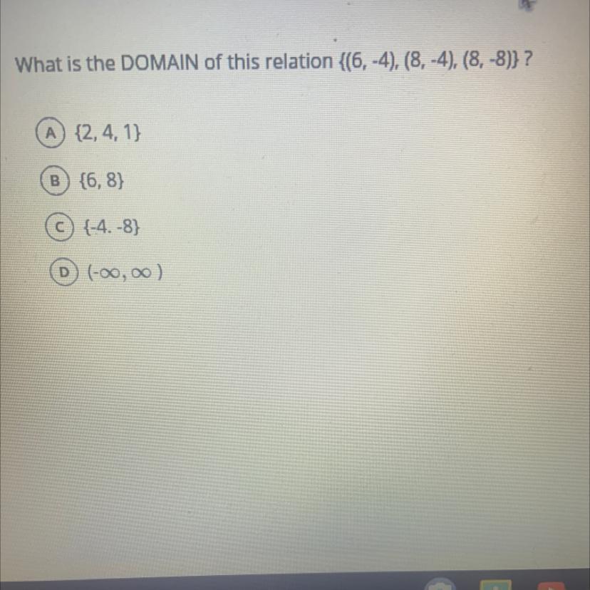 Well first you have to see where it is going with this. It is negative no? so cross out the postive numbers. Then you are left with infinite and (-4,-8). Now do you see the pattern. -4, -4, -8. It will not go to infinite so cross out that. Now what are you left with? That's right (-4,-8)