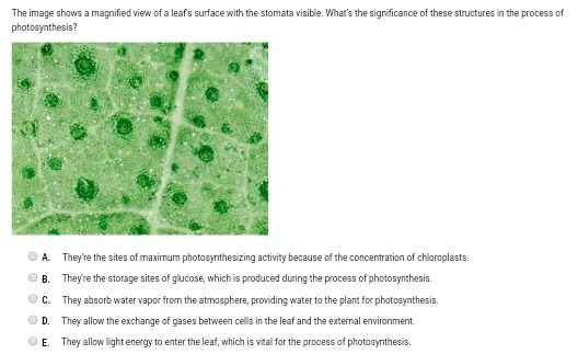 Stomata, are little mouth-like structures that can open and close. We could say, that they're gas-exchange hotpoints, since when they're open, they exchange gases with the environment, helping significantly duing the process of photosyntehsis.