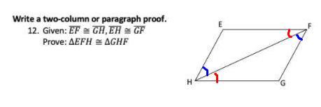 is a diagonal of the parallelogram EFGH. When we have a diagonal in a parallelogram, the opposite angles are congruents (look at the picture: the blue angles are congruent and the red angles are congruents too). Therefore,