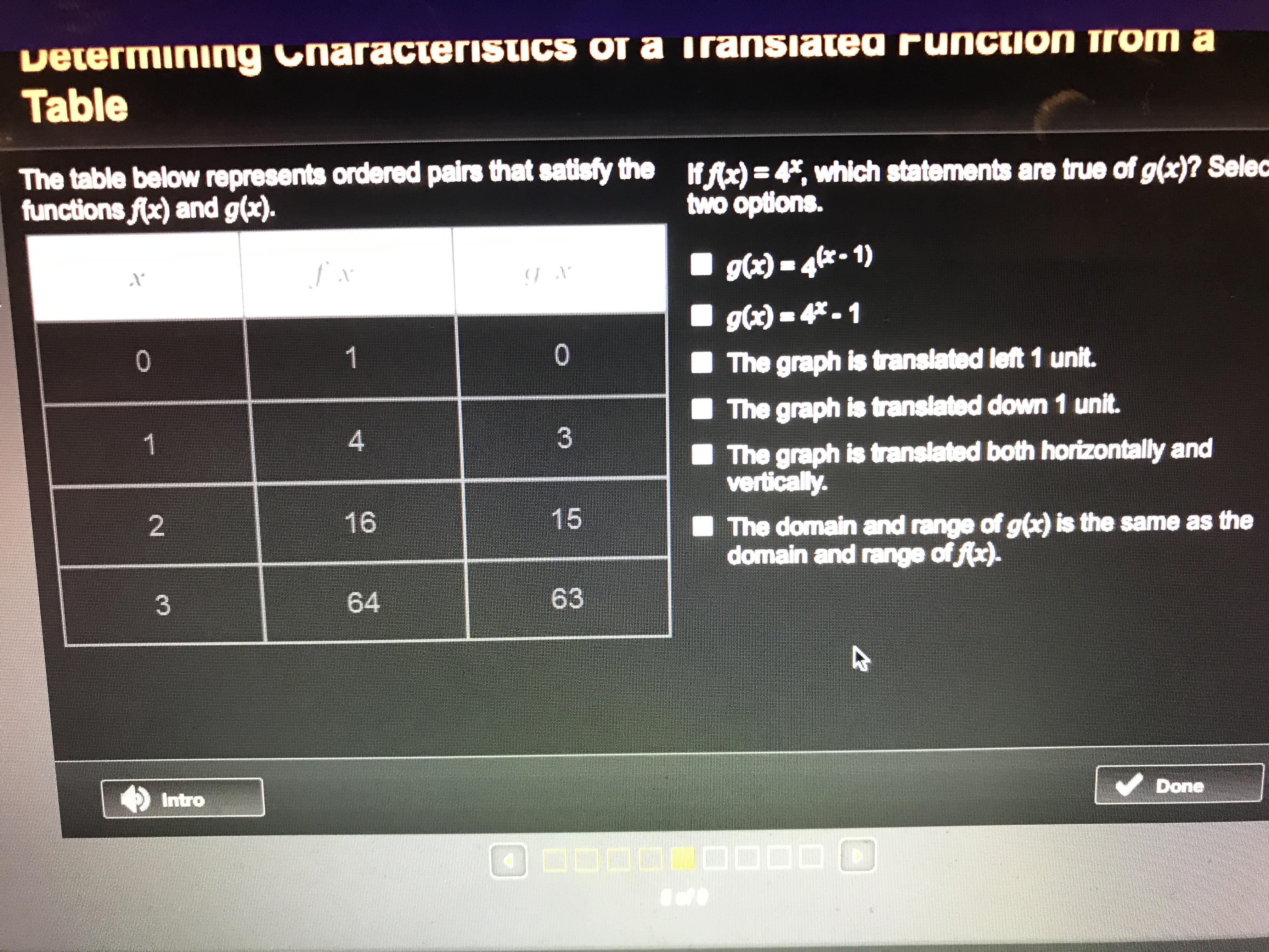 approaches negative infinity, the exponentials always approaches zero. Thus, f(x) has range between zero and positive infinity. But, for g(x), we are subtracting one unit from the Y values, therefore the range will be between negative one and positive infinity. In conclusion, their range is different.