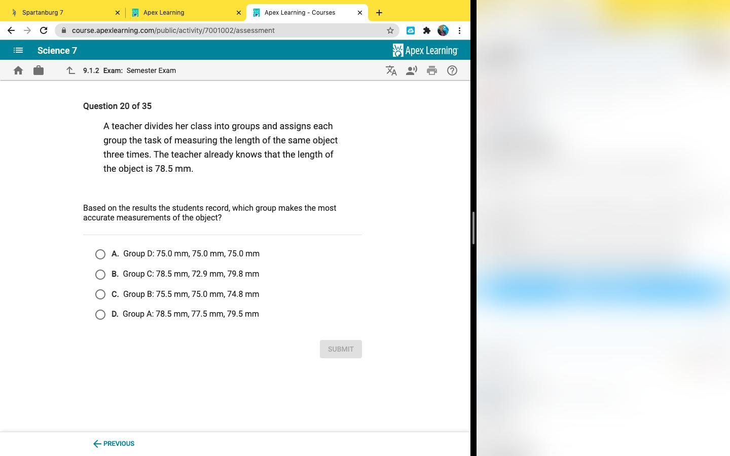 Group A- 78.5 mm, 77.5 mm, 79.5 mm