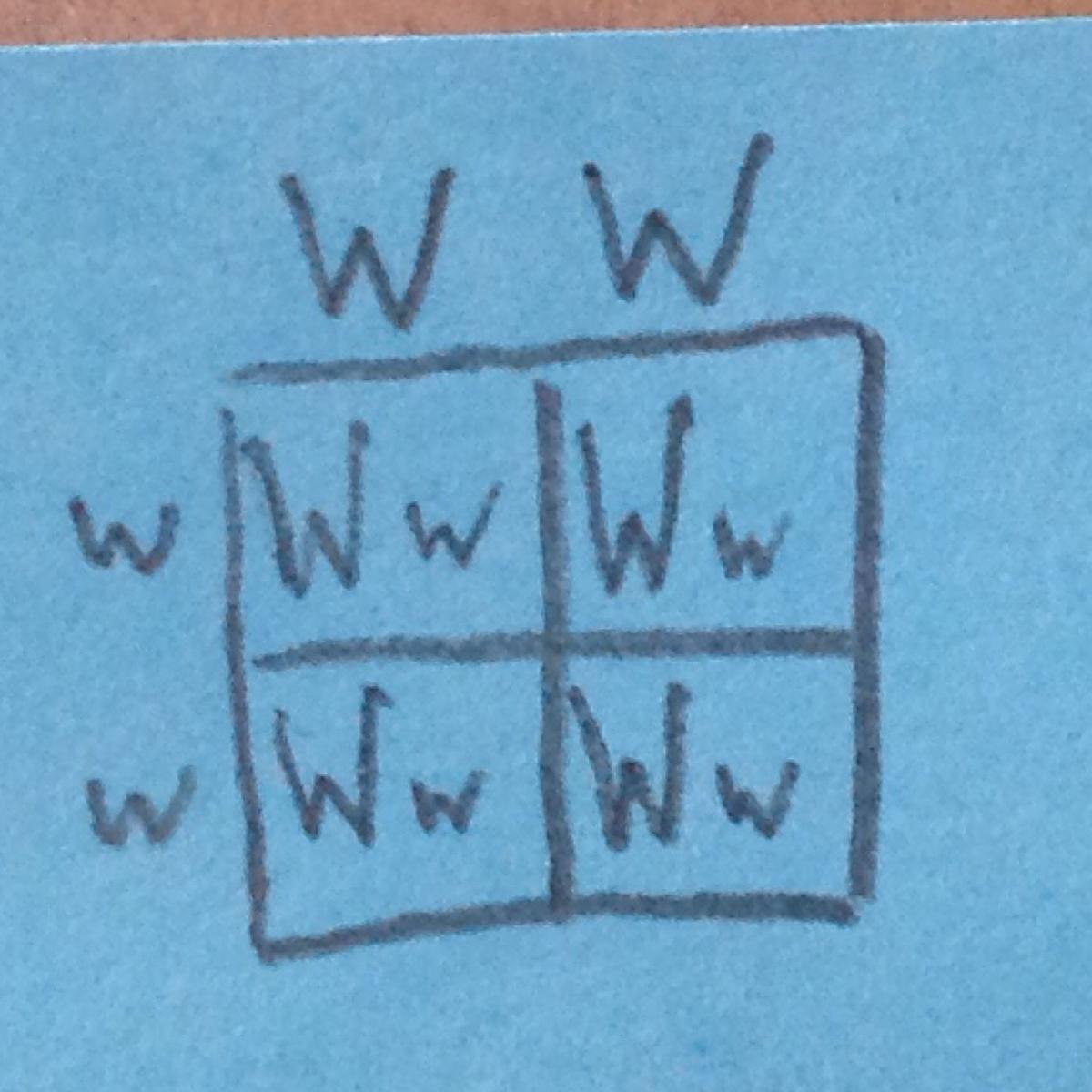 Cross the parents: WW x ww in a Punnett square (see photo below)