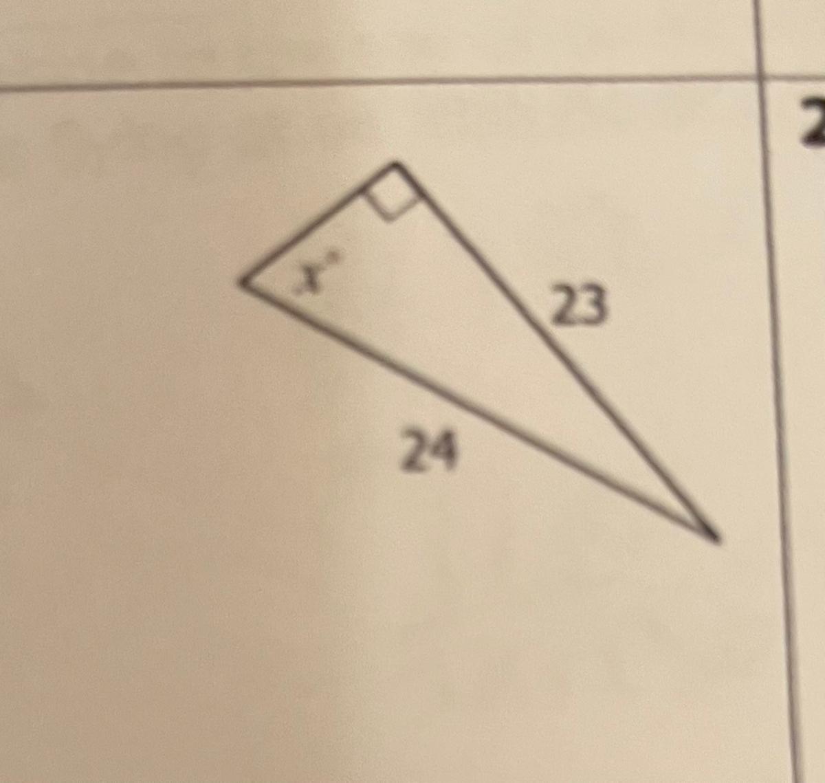 {x}^{2}  =  {24}^{2}  -  {23}^{2}  \\  \\  {x}^{2}  = 576 - 529 \\  \\  {x}^{2}  = 47 \\  \\ x =  \sqrt{47}