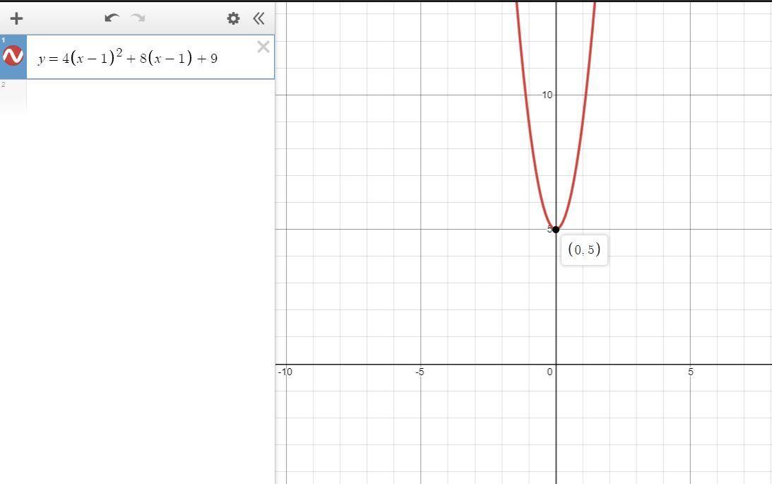 We are told that the graph of y = ax2 + bx + c is a parabola that opens up and has a vertex at (0, 5). Since the parabola opens up, the vertex (0, 5) will be the lowest point on the graph of the function. This implies that the parabola does not intersect the x-axis; the line y = 0. Therefore, the equation;