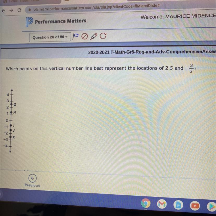 Which points on this vertical number line best represent the locations of 2.5 and