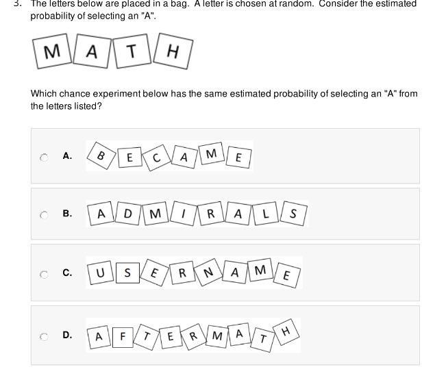 Probability of finding A in MATH = 1/4