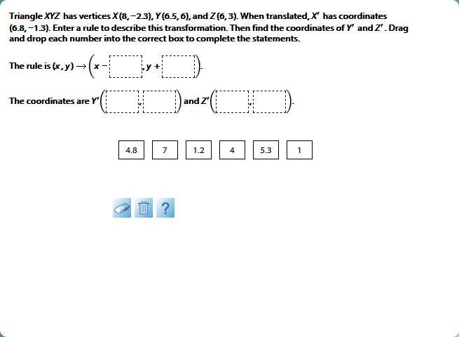 To do that we use the rule and subtract 1.2 from x and add 1 to y