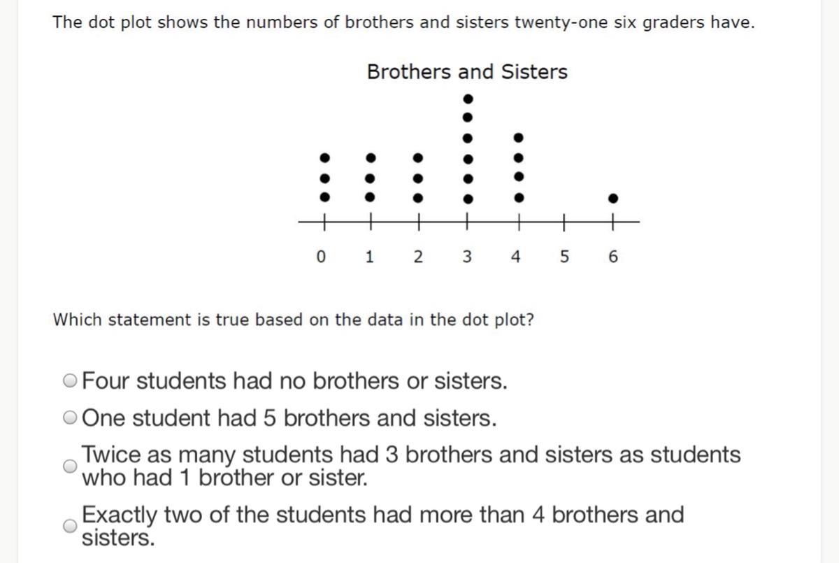 Twice as many students had 3 brothers or sisters as students who had 1 brother or sister