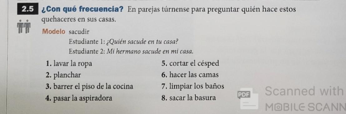 Estudiante 1: ¿Quién lava los baños en tu casa?