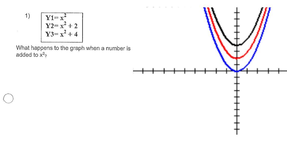 Conclusion: if a is added onto x^2 and a is greater than 0, then the graph's vertex will move up. along to + y axis.