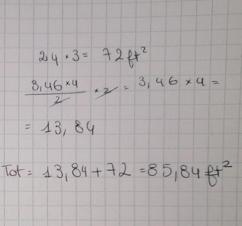 72 + 13.84 = 85.84 ft²