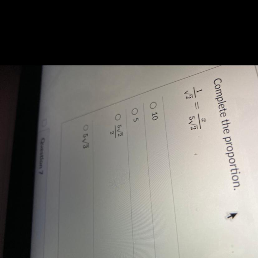 therefore 1/4 equals to x over 5 2 square