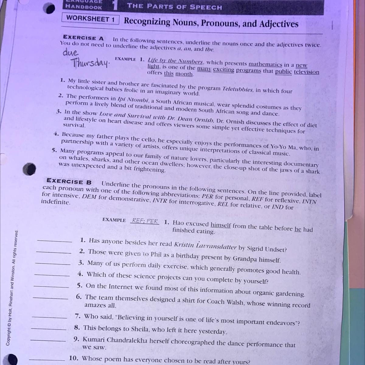 <em>NOUNS : </em>my father , the cello , the performances , yoyo ma , artists , classical music