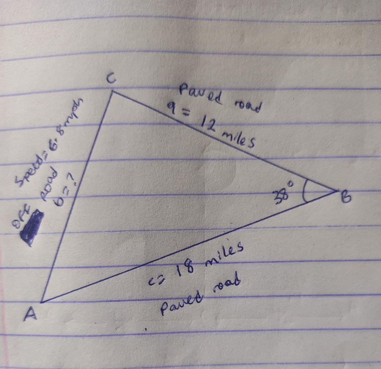 a = 12 miles; c = 18 miles; ∠B = 38°