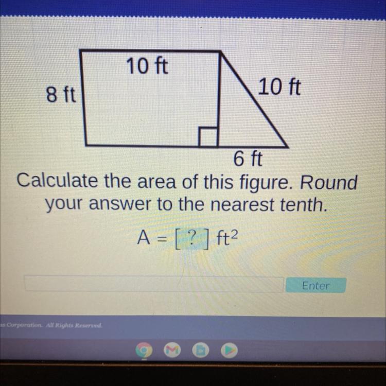 Answer: area of triangle = 13.4 ft ( after rounding the answer to 3 significance figures)