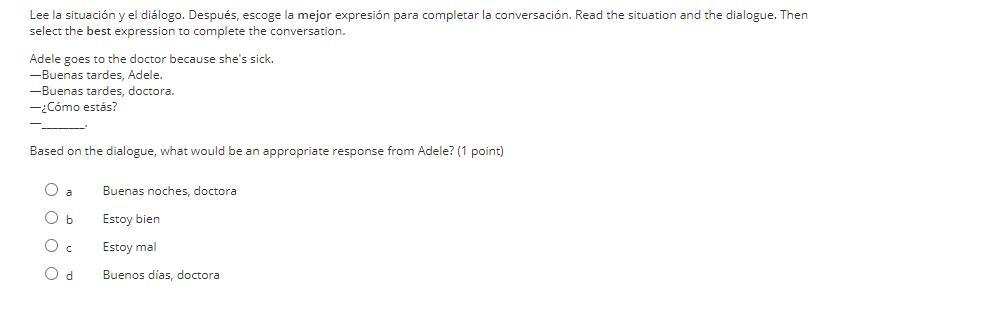 It’s C because “estoy mal” mean “I feeling bad or I am not feeling okay”.