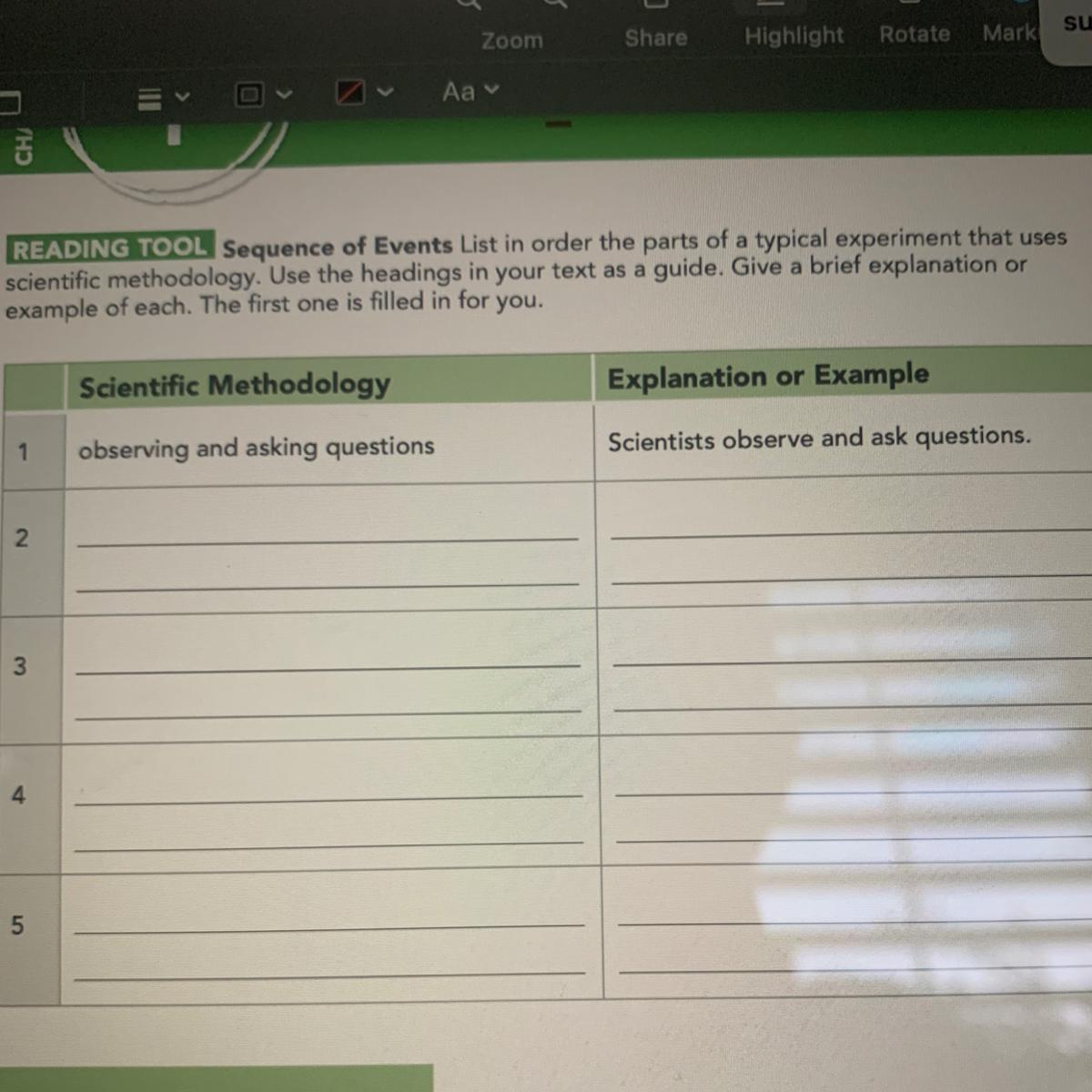 READING TOOL Sequence of Events List in order the parts of a typical experiment that uses