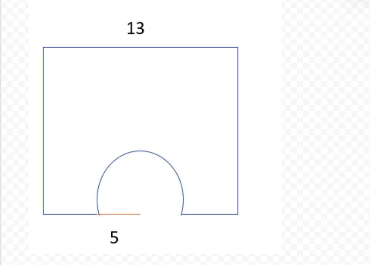 The perimeter of a square of side length of 13 ft, minus 5 ft (the diameter of the circle), plus half the perimeter of a circle of diameter 5ft.