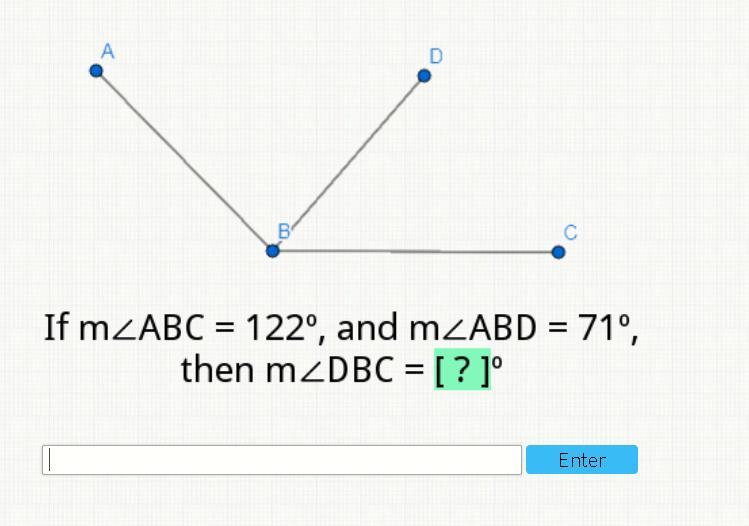 We are given that angle ABC = 122 and angle ABD = 71