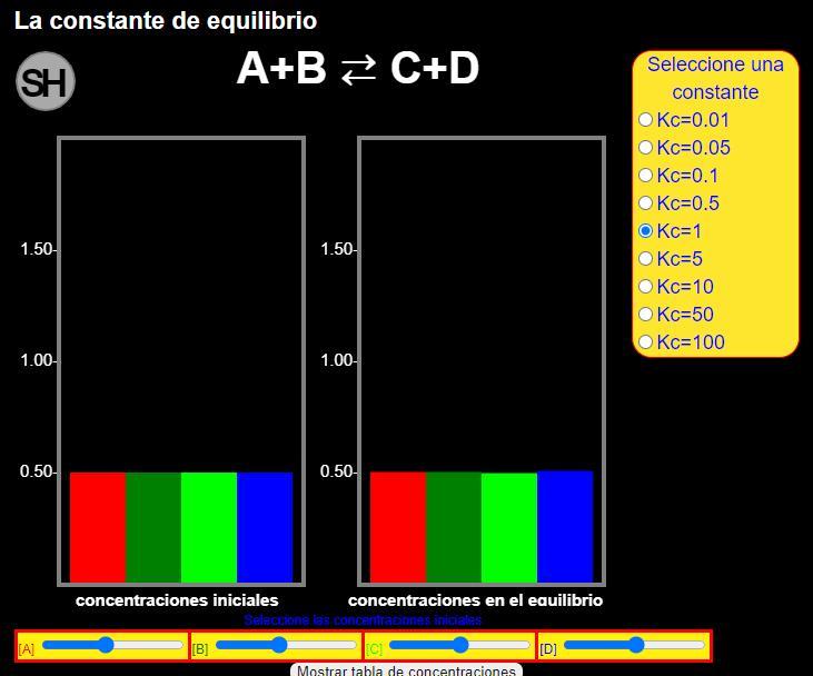 5. Calcule las concentraciones cuando se alcanza el equilibrio si partimos de unas concentraciones iniciales [A]=[B]=1M ; [C]=[D