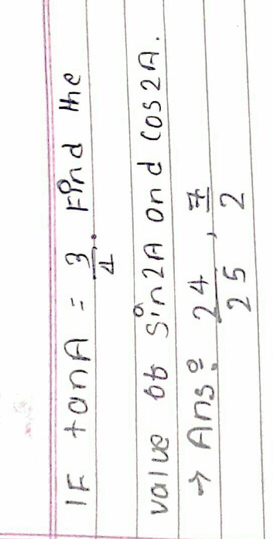 First we need to set this ratio up in the coordinate plane. Because this is tangent, the 3 goes opposite the reference angle and the 4 goes along the x-axis, adjacent to the reference angle. We see that we are missing the third side of the triangle when we do this, namely the hypotenuse. We use Pythagorean's Theorem to find that this side is 5. Now we have to deal with the identities for each sin(2A) and cos(2A).