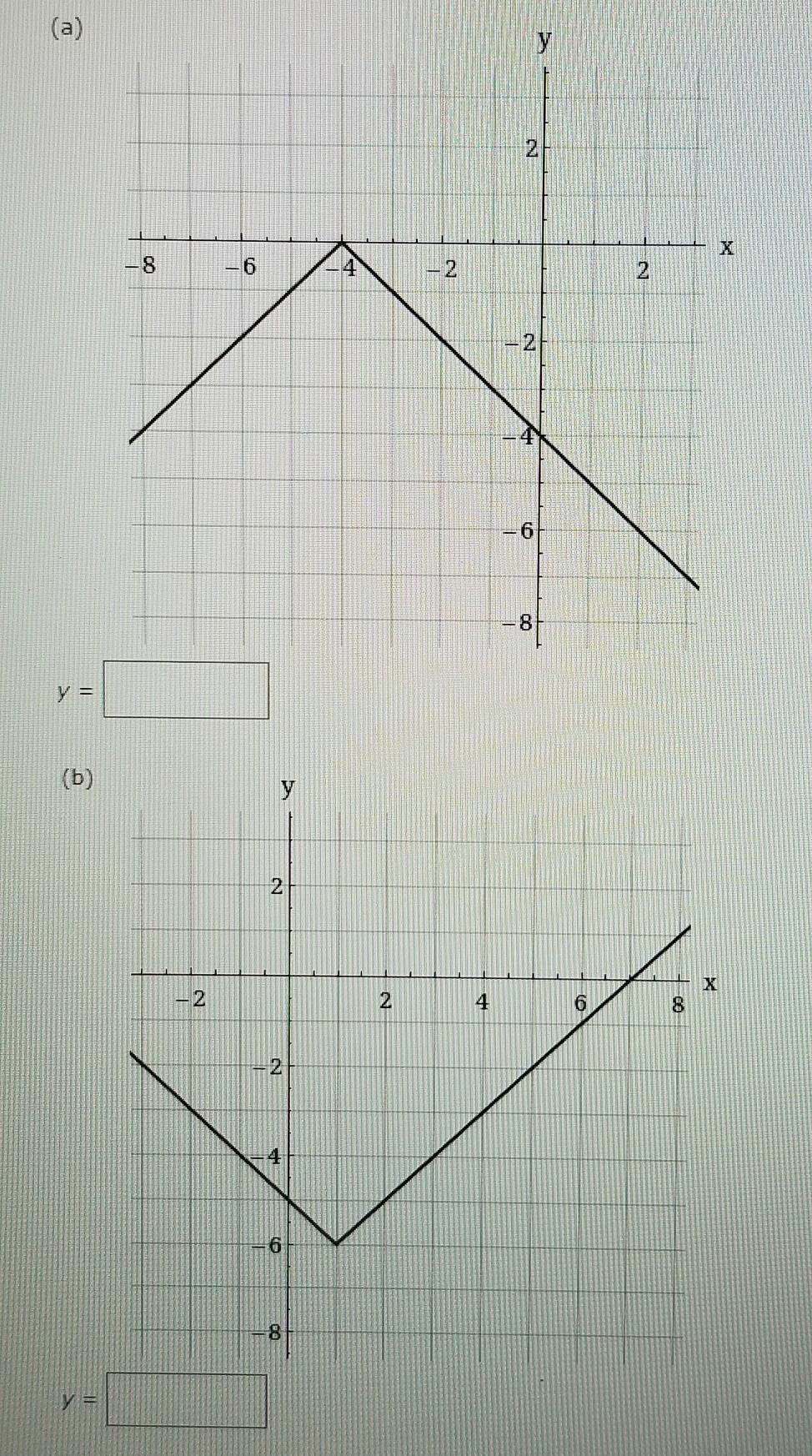 First, -f(x) turns a function upside down. Therefore, we have -f(x) = -|x| (this is our new f(x) for (a)). Then, f(x+b) shifts a function b units to the left, so we have f(x+4) = -|x+4|. Note that the 4 is inside the absolute values as it is f(x+b) and not f(x) + b. For f(x+b), we substitute x+b for x. For f(x)+b, we add a b at the end.
