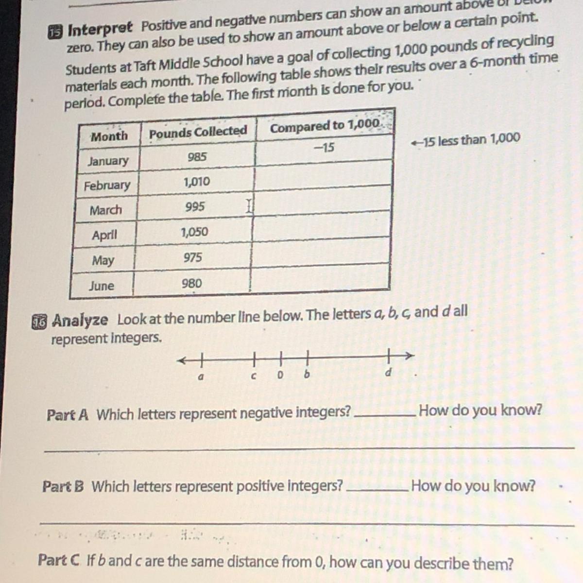 PART B: letters b and d represent the positive integers because they are above zero on the number line.