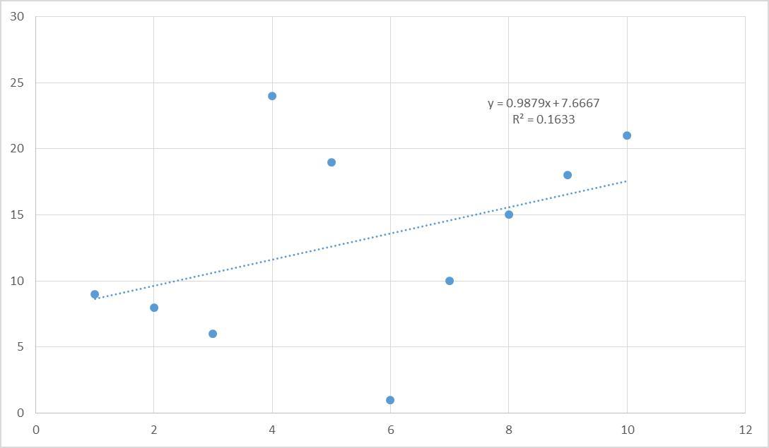 But the value of R² = 0.176 shows that the fit is very weak, so we can conclude that this is not a good model for the data.