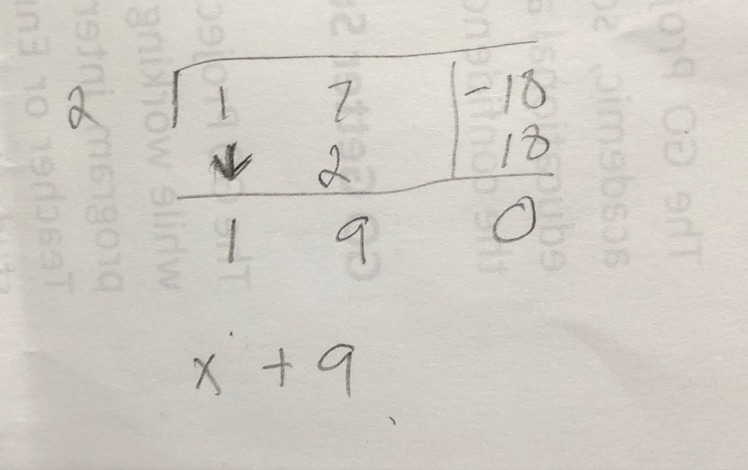 I think it is self explanatory. Good luck! And remember you can always use long division if you don’t prefer synthetic division. Just rewrite the coefficients in the proper equation. :)
