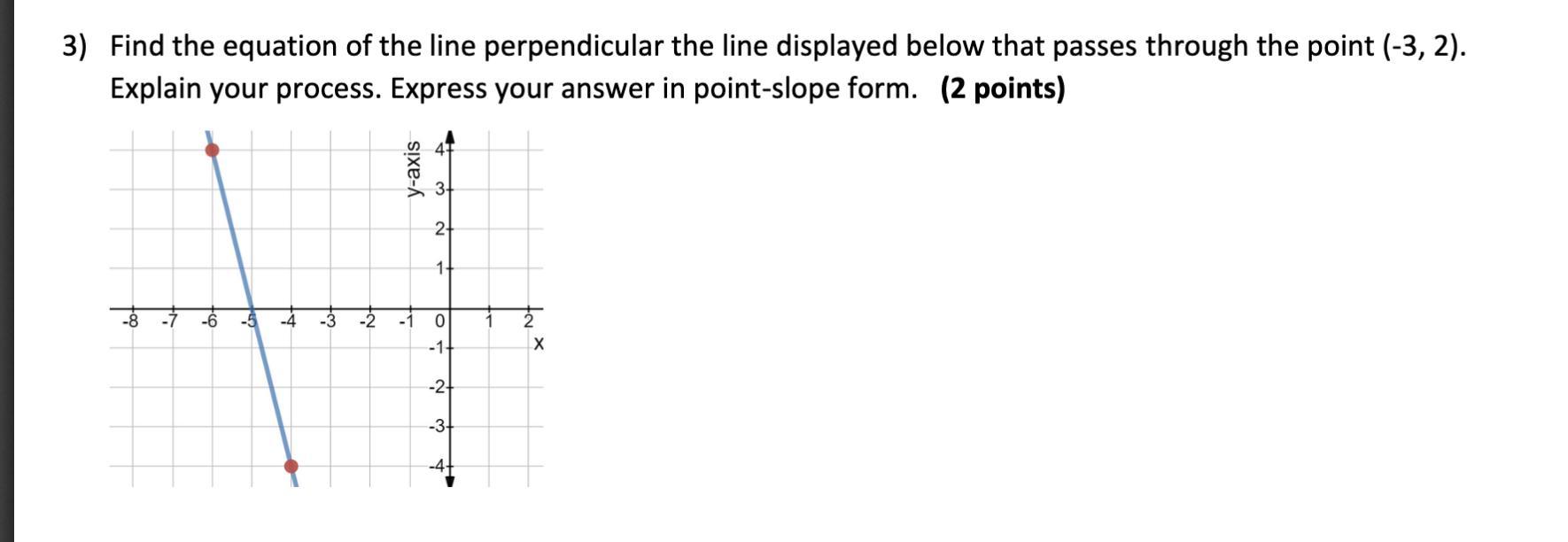 1. Slope intercept form. First find two points to get slope: (0,-3) and (-3,-4). Slope is