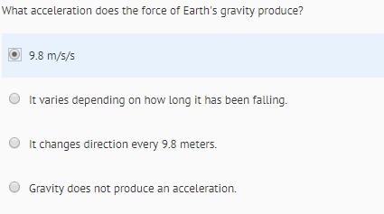 Earth's gravity produces acceleration of 9.8 meters per second²