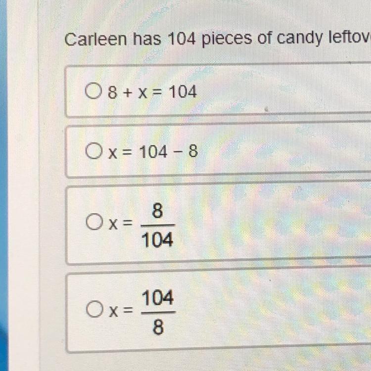 8y/3=x+4 then we will subtract both sides by 4 to get x all by itself