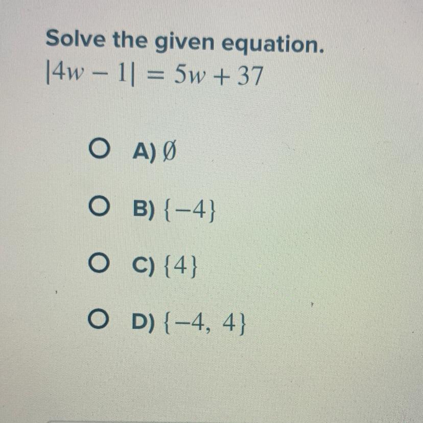 4w-1=5w+37 ==> w=-38 (exclude since not >1/4)